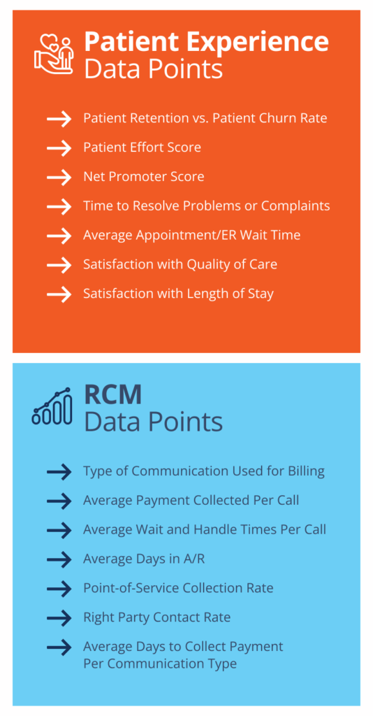 By analyzing KPIs from both the patient experience and RCM side, you can determine correlations that may be worthy of closer attention and inform future decision-making.